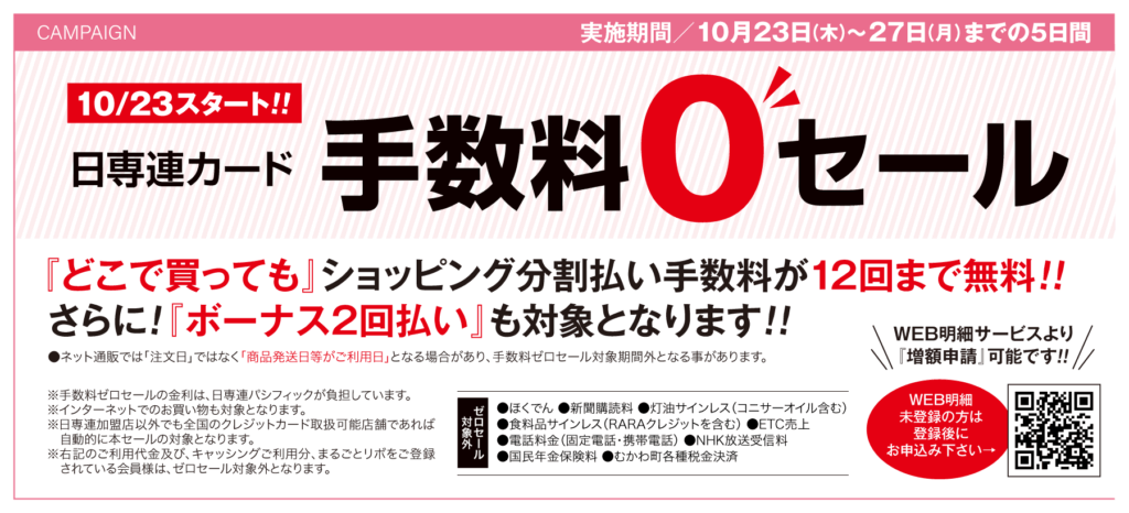 手数料0セール12回まで無料☆10月23日~27日の5日間♪